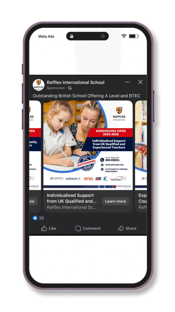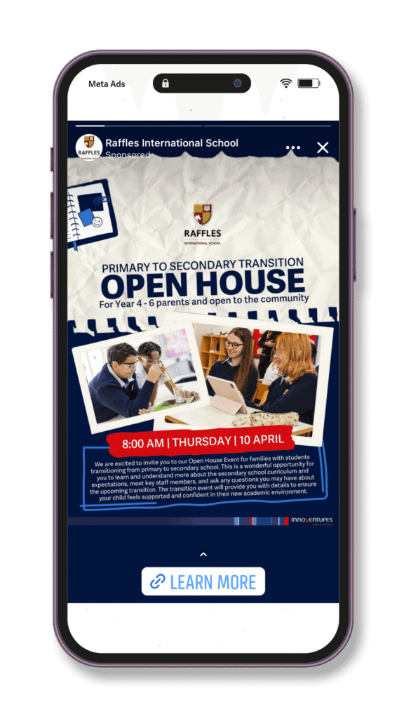 School Open Day post for socials, for Raffles International School